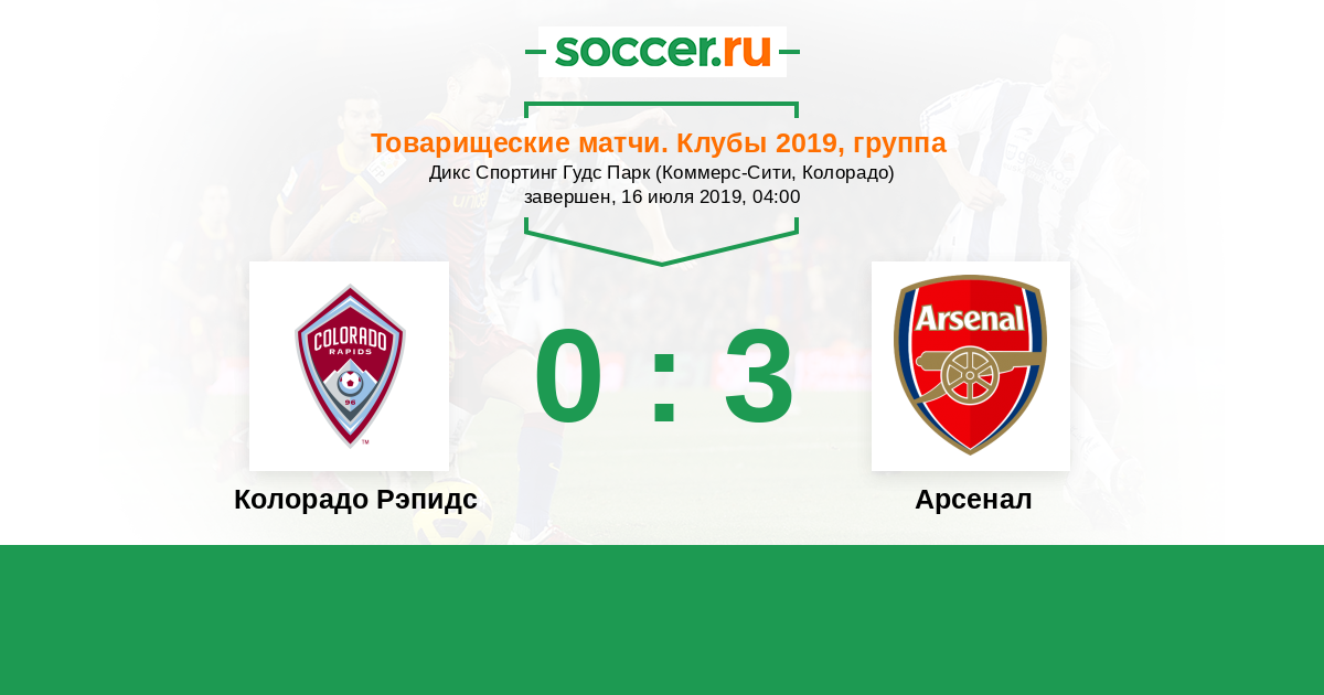 Колорадо Рэпидс - Арсенал: обзор матча 16 июля 2019