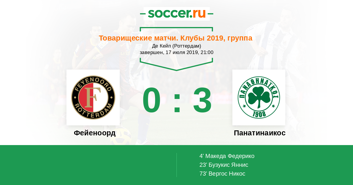 Фейеноорд - Панатинаикос: обзор матча 17 июля 2019