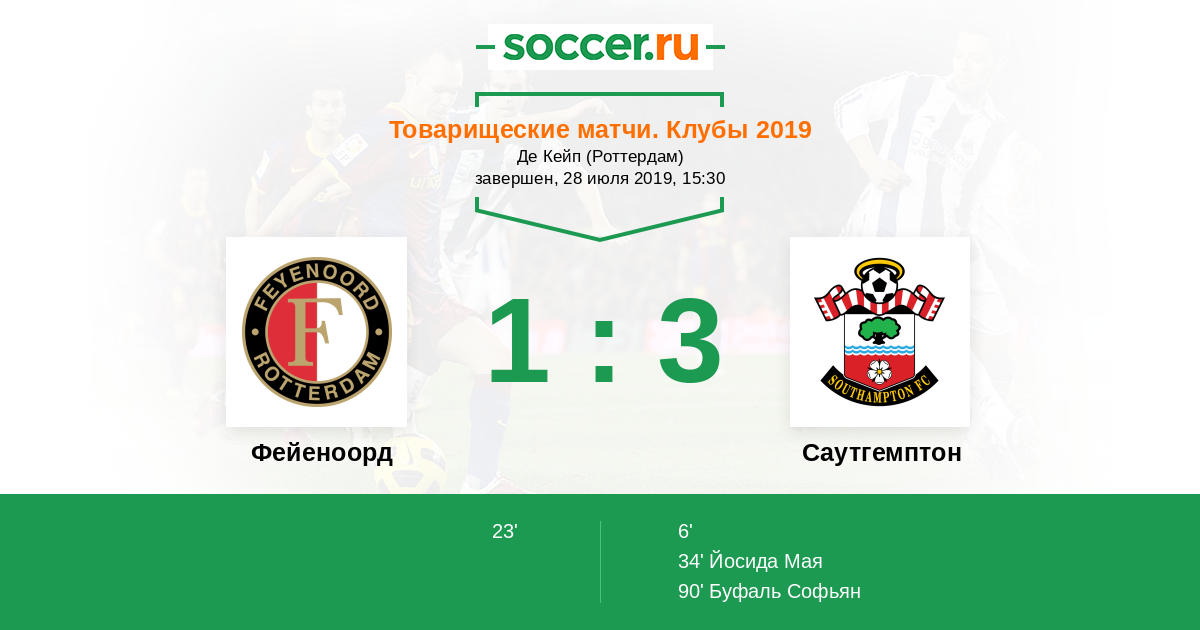 Фейеноорд - Саутгемптон: обзор матча 28 июля 2019