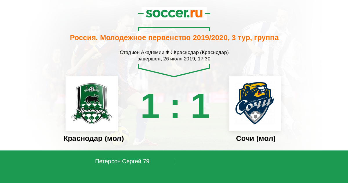 Краснодар (мол) - Сочи (мол): обзор матча 26 июля 2019
