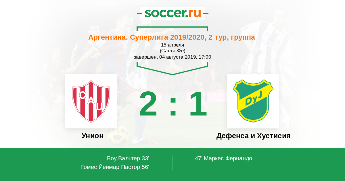 Унион - Дефенса и Хустисия: обзор матча 4 августа 2019