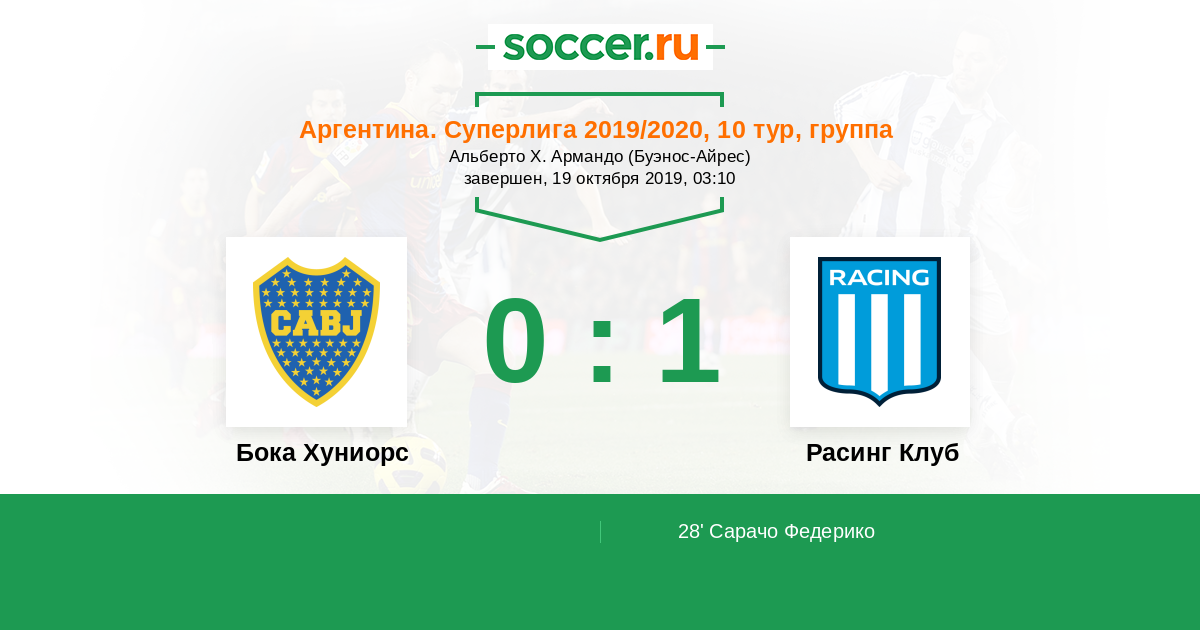 Бока Хуниорс - Расинг Клуб: обзор матча 19 октября 2019