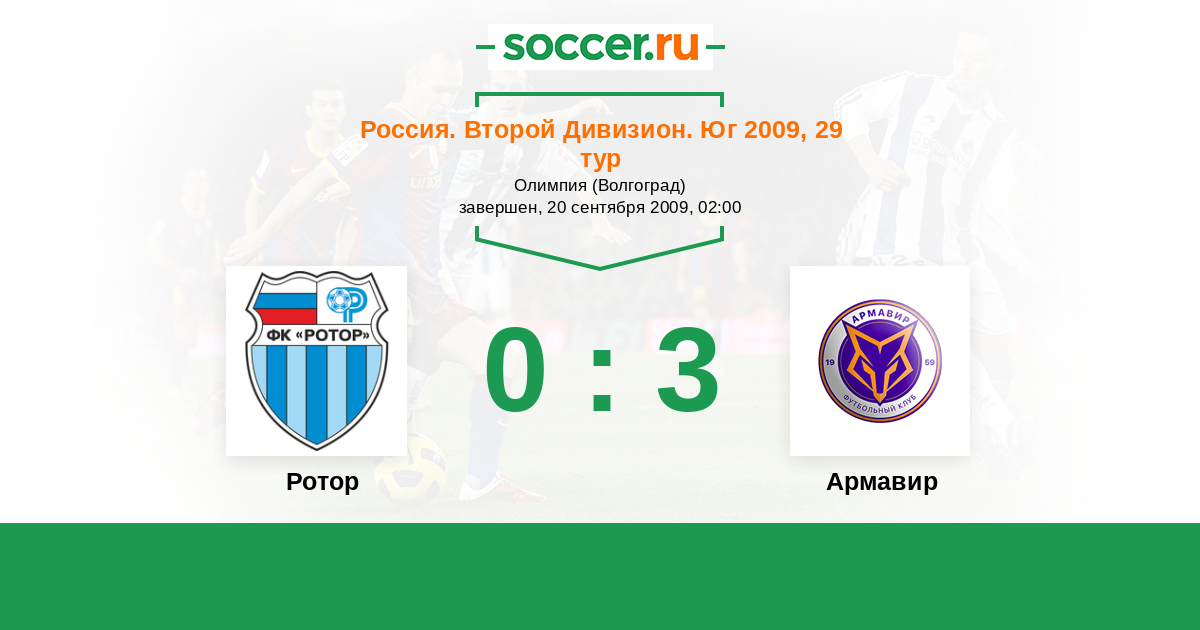 Ротор - Торпедо Армавир: обзор матча 20 сентября 2009
