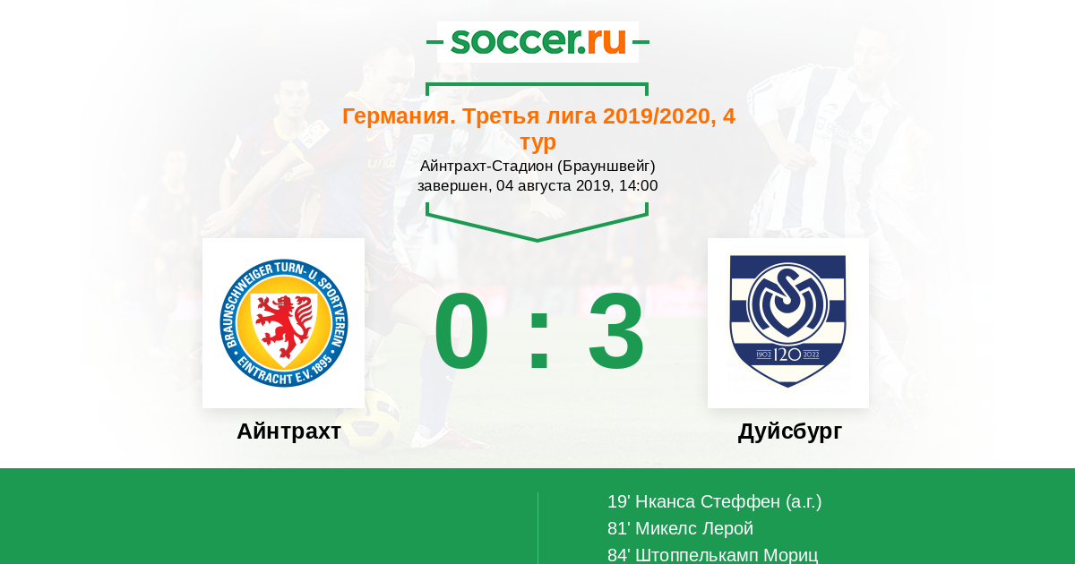 Айнтрахт - Дуйсбург: обзор матча 4 августа 2019