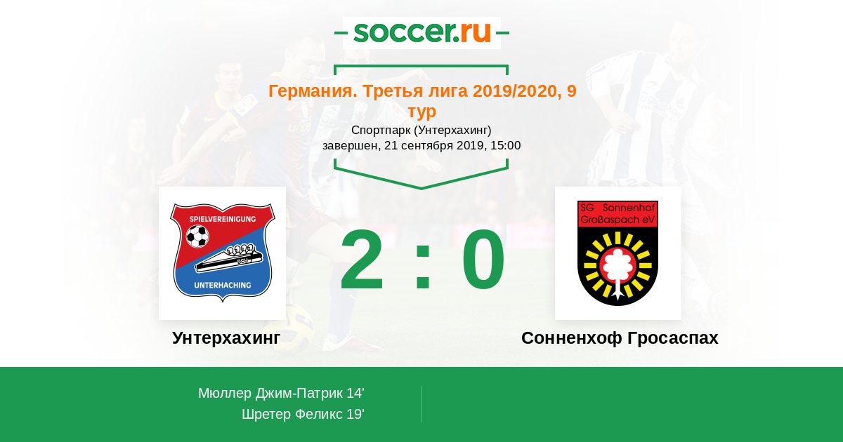 Унтерхахинг - Сонненхоф Гросаспах: обзор матча 21 сентября 2019