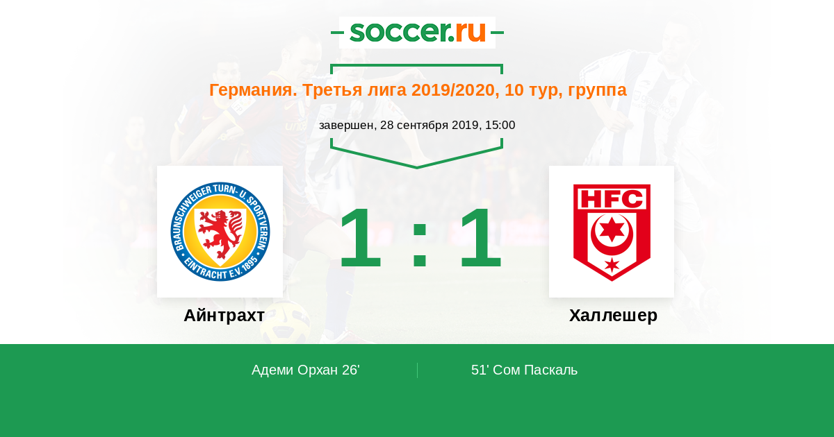 Айнтрахт - Халлешер: обзор матча 28 сентября 2019