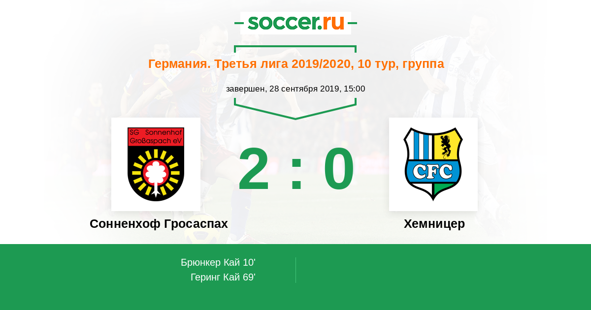 Сонненхоф Гросаспах - Хемницер: обзор матча 28 сентября 2019