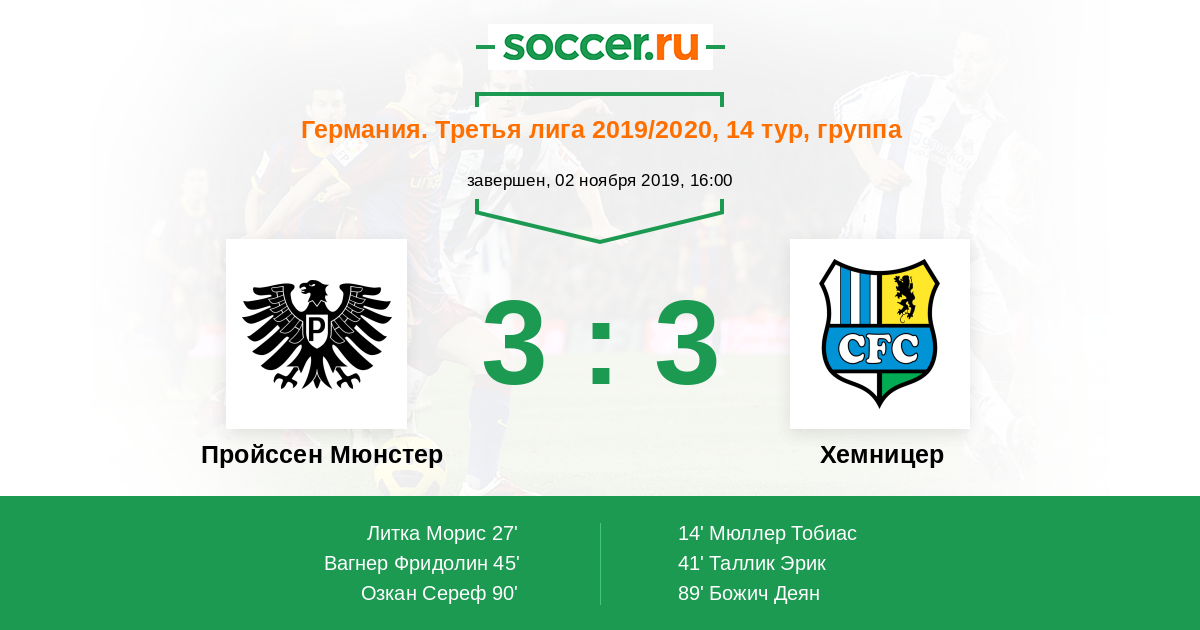 Пройcсен Мюнстер - Хемницер: обзор матча 2 ноября 2019