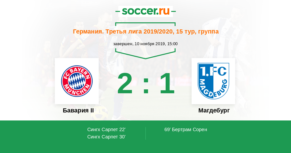 Бавария II - Магдебург: обзор матча 10 ноября 2019
