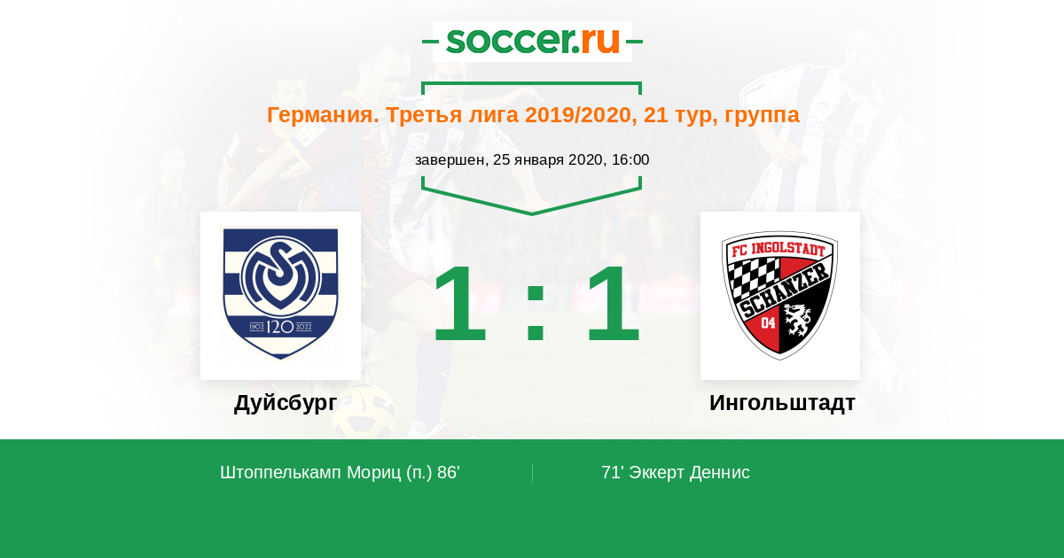 Дуйсбург - Ингольштадт: обзор матча 25 января 2020