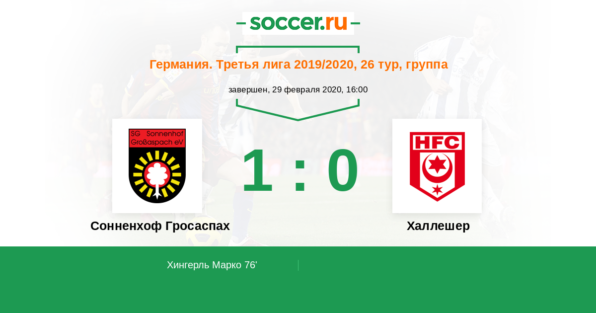 Сонненхоф Гросаспах - Халлешер: обзор матча 29 февраля 2020