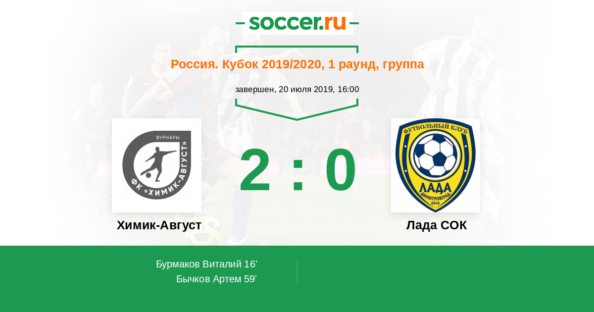 Химик-Август - Лада СОК: обзор матча 20 июля 2019