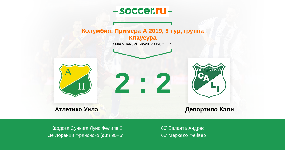 Атлетико Уила - Депортиво Кали: обзор матча 28 июля 2019