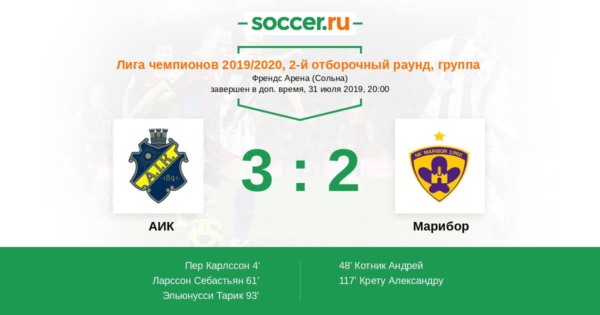 АИК - Марибор: обзор матча 31 июля 2019
