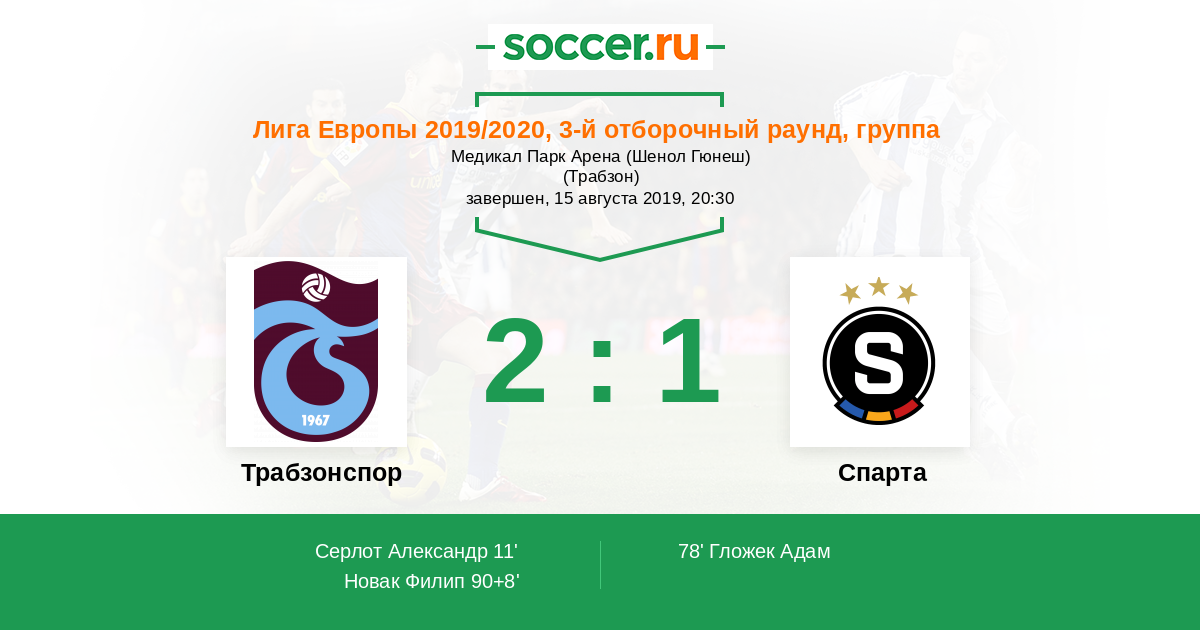 Трабзонспор - Спарта: обзор матча 15 августа 2019