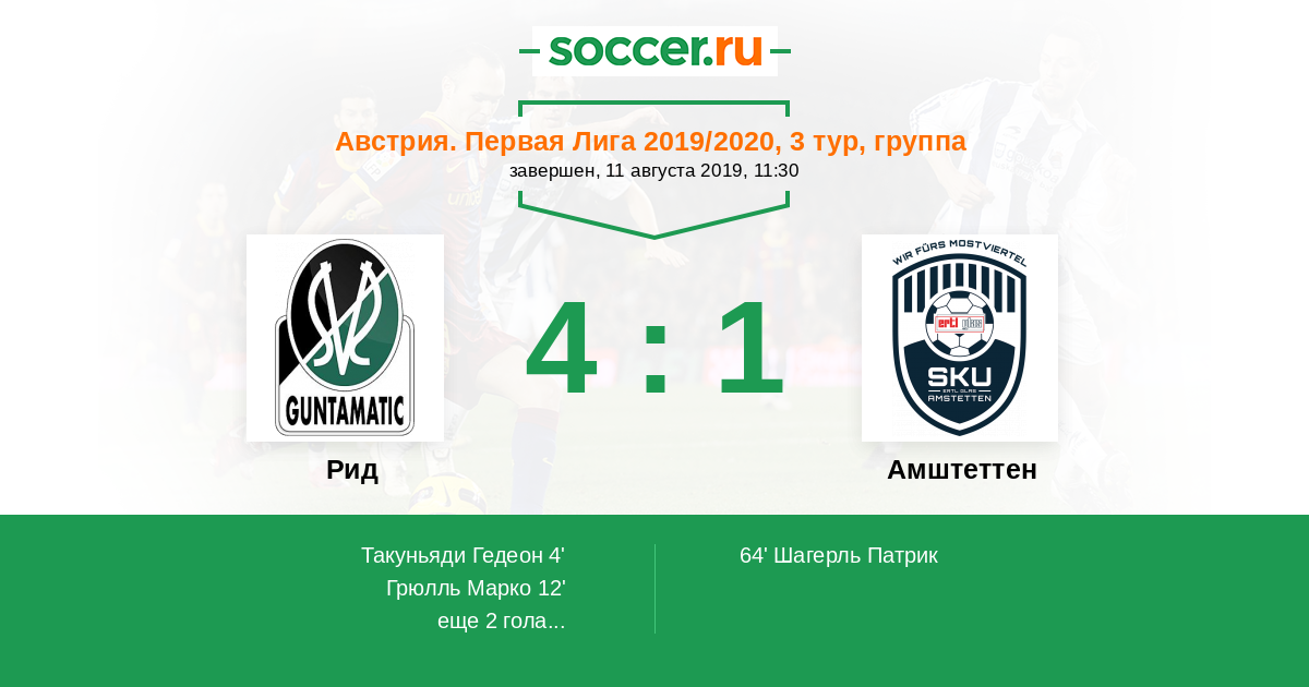 Рид - Амштеттен: обзор матча 11 августа 2019