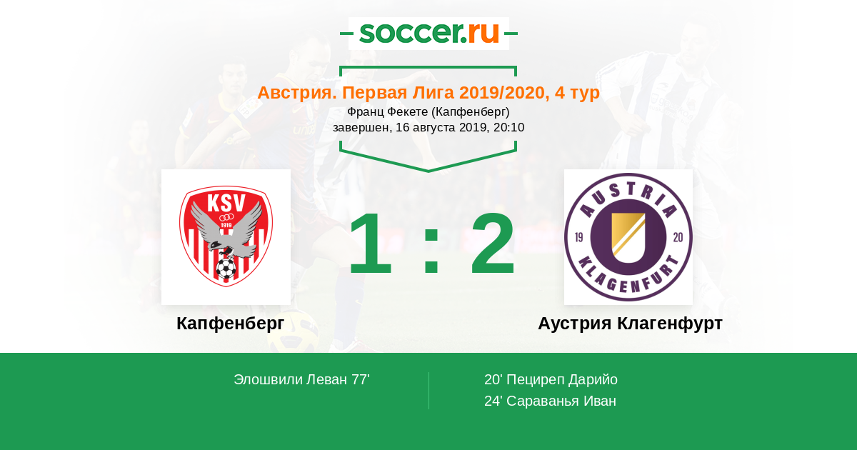 Капфенберг - Аустрия Клагенфурт: обзор матча 16 августа 2019