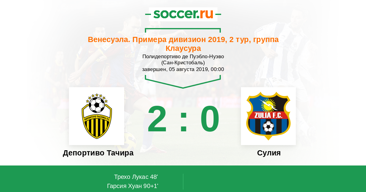 Депортиво Тачира - Сулия: обзор матча 5 августа 2019