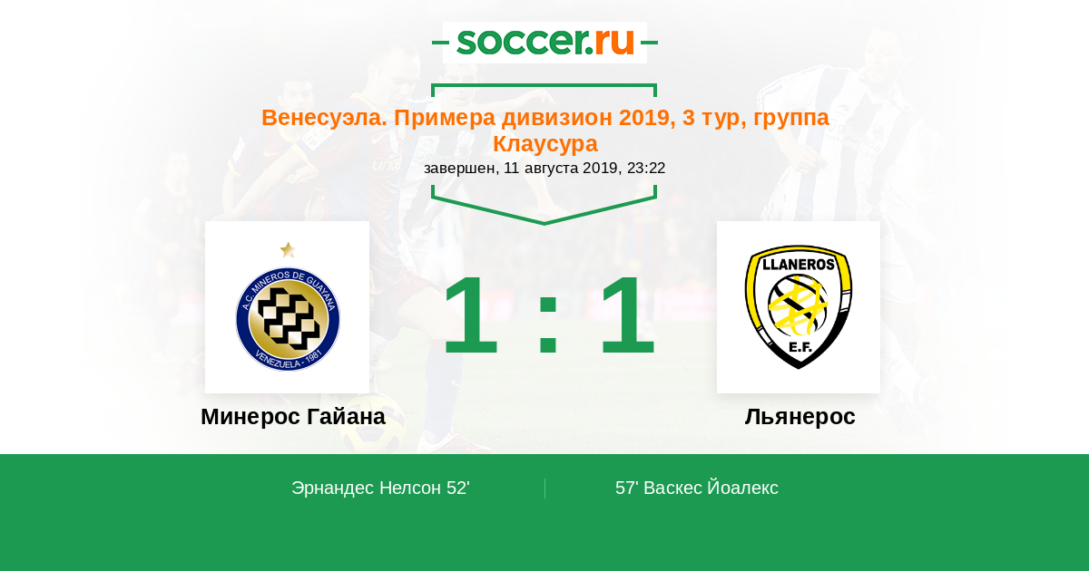 Минерос Гайана - Льянерос: обзор матча 11 августа 2019