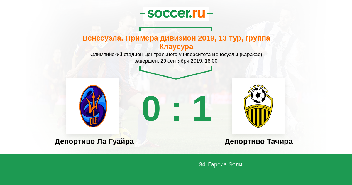 Депортиво Ла Гуайра - Депортиво Тачира: обзор матча 29 сентября 2019