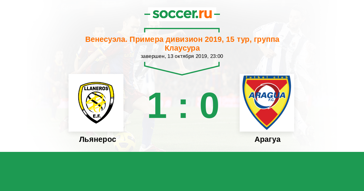 Льянерос - Арагуа: обзор матча 13 октября 2019