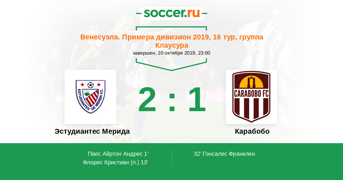Эстудиантес Мерида - Карабобо: обзор матча 20 октября 2019