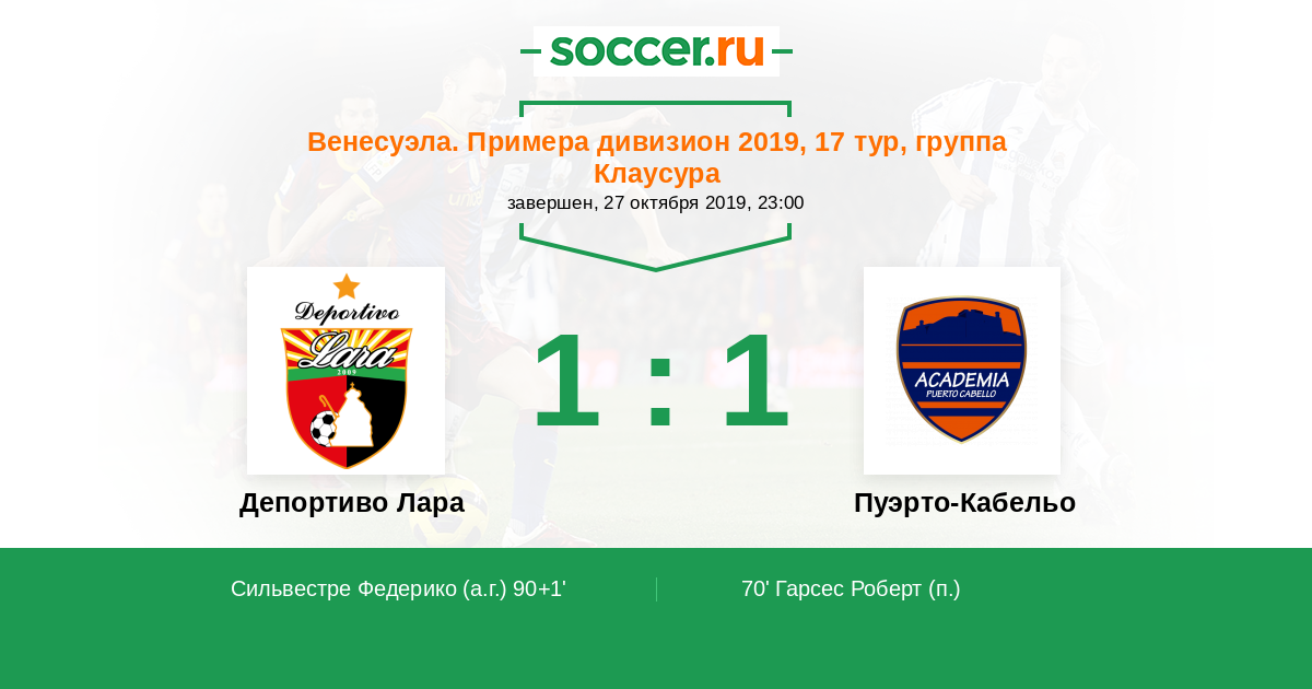 Депортиво Лара - Пуэрто-Кабельо: обзор матча 27 октября 2019