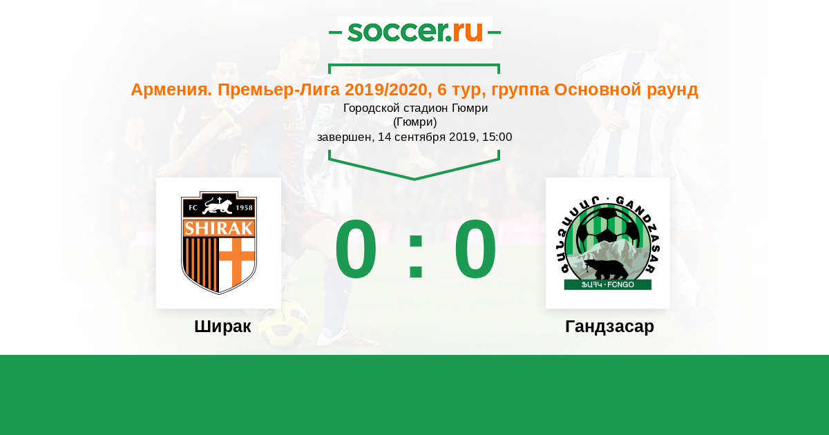 Ширак - Гандзасар: обзор матча 14 сентября 2019