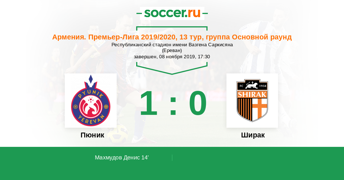 Пюник - Ширак: обзор матча 8 ноября 2019