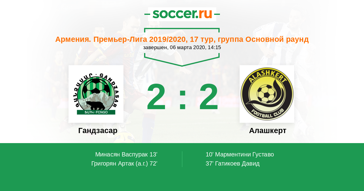Гандзасар - Алашкерт: обзор матча 6 марта 2020