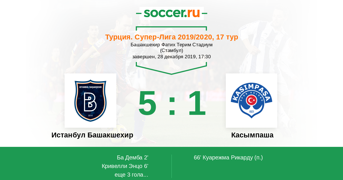 Истанбул Башакшехир - Касымпаша: обзор матча 28 декабря 2019