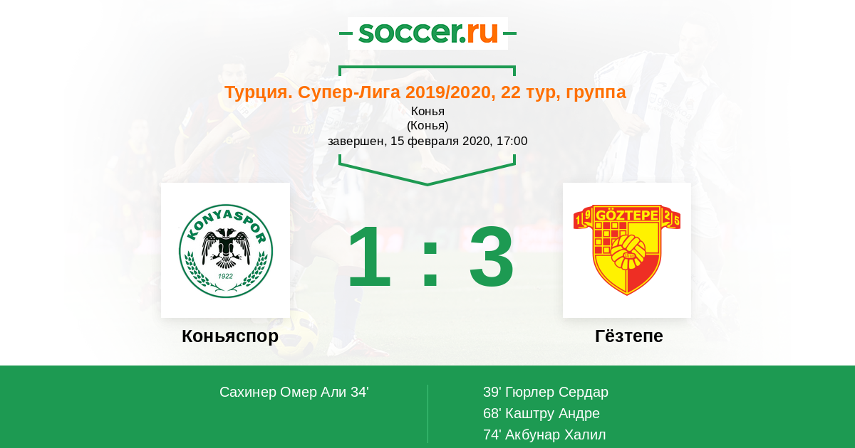 Коньяспор - Гёзтепе: обзор матча 15 февраля 2020