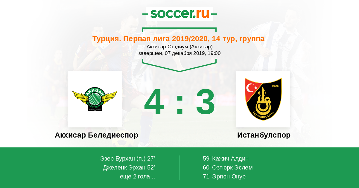 Акхисар Беледиеспор - Истанбулспор: обзор матча 7 декабря 2019