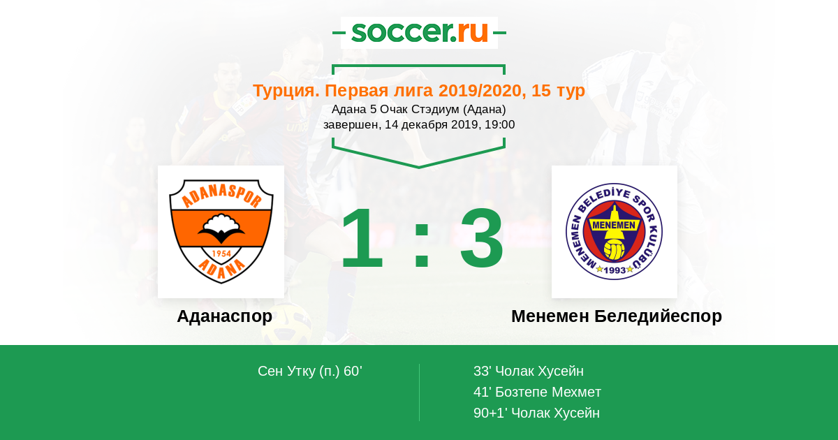 Аданаспор - Менемен Беледийеспор: обзор матча 14 декабря 2019