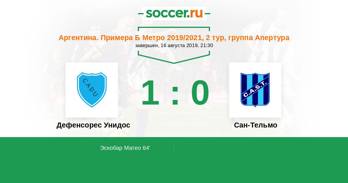 Дефенсорес Унидос - Сан-Тельмо: обзор матча 16 августа 2019