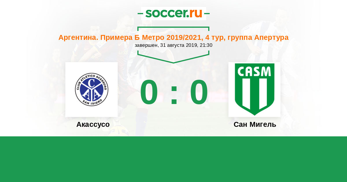 Акассусо - Сан Мигель: обзор матча 31 августа 2019