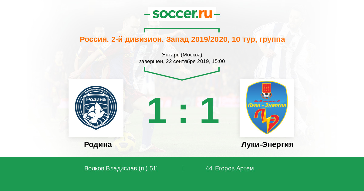 Родина - Луки-Энергия: обзор матча 22 сентября 2019