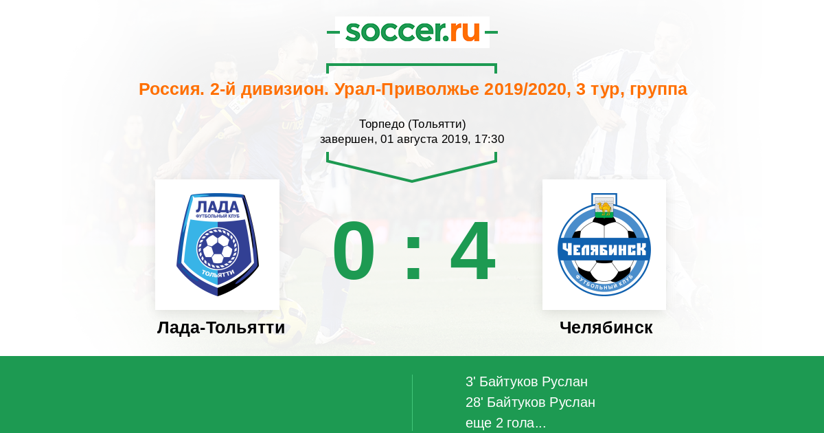 Лада-Тольятти - Челябинск: обзор матча 1 августа 2019