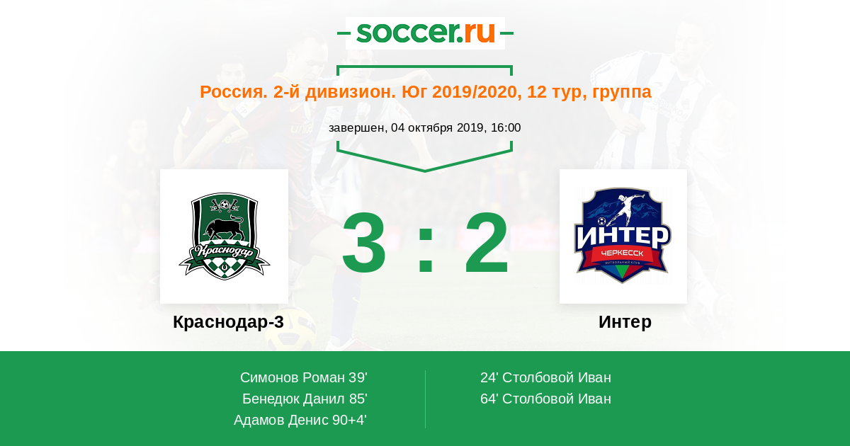 Краснодар-3 - Интер: обзор матча 4 октября 2019