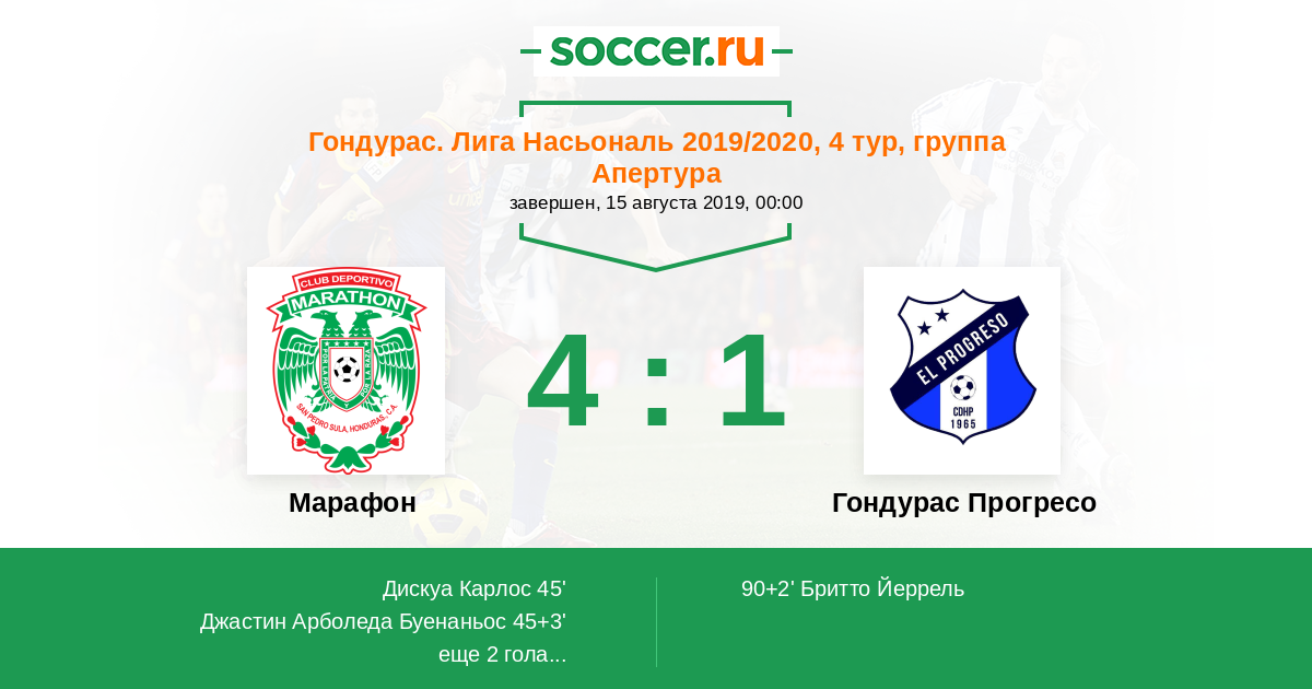 Марафон - Гондурас Прогресо: обзор матча 15 августа 2019