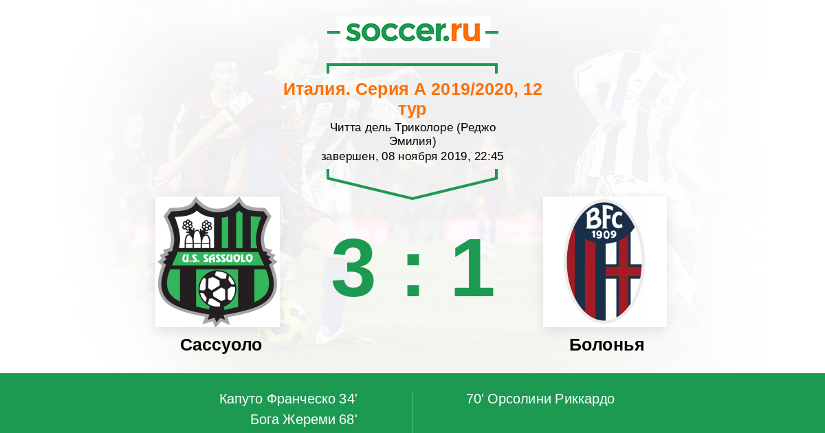 Сассуоло - Болонья: обзор матча 8 ноября 2019