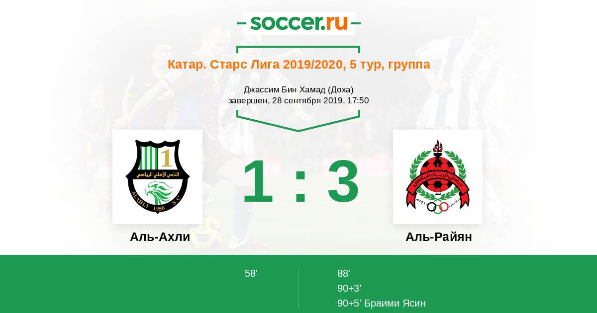 Аль-Ахли - Аль-Райян: обзор матча 28 сентября 2019
