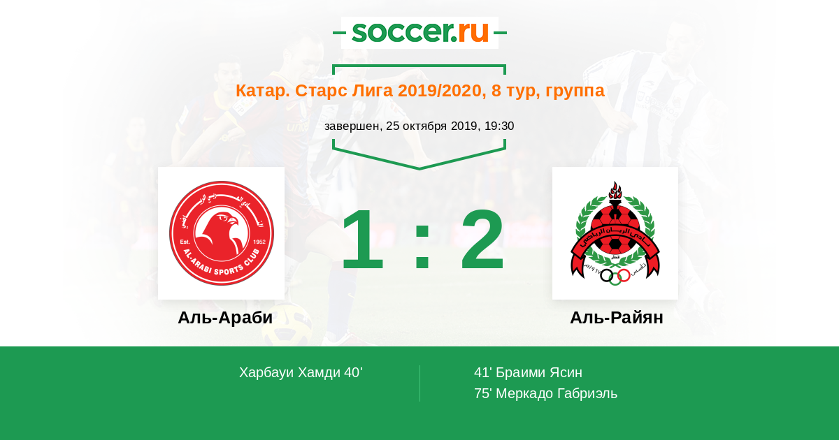 Аль-Араби - Аль-Райян: обзор матча 25 октября 2019