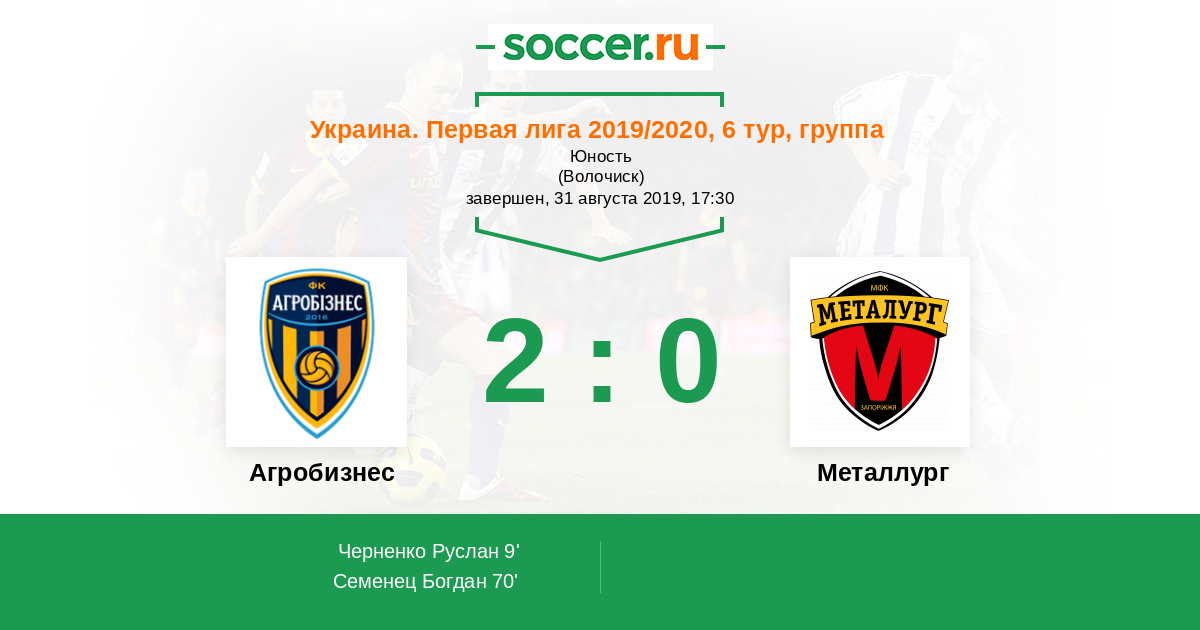 Агробизнес - Металлург: обзор матча 31 августа 2019