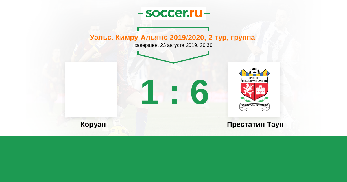 Коруэн - Престатин Таун: обзор матча 23 августа 2019