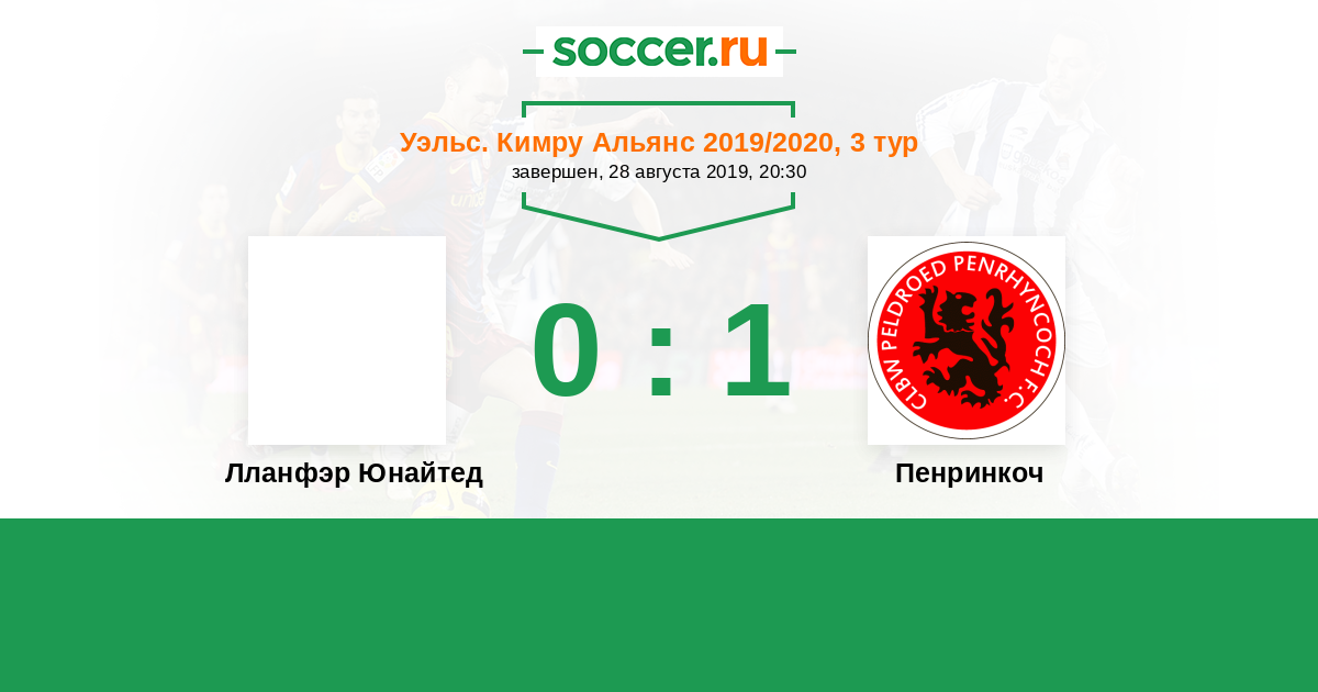 Лланфэр Юнайтед - Пенринкоч: обзор матча 28 августа 2019