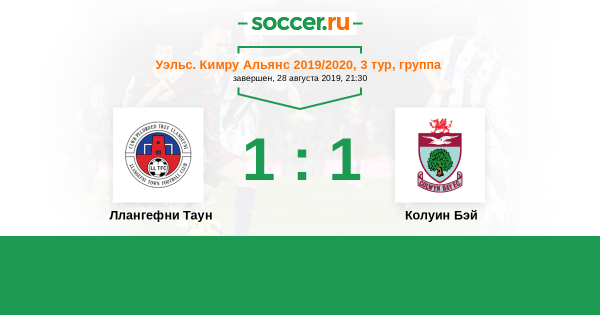 Ллангефни Таун - Колуин Бэй: обзор матча 28 августа 2019
