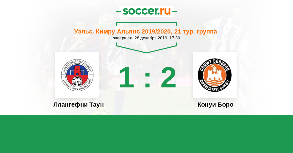Ллангефни Таун - Конуи Боро: обзор матча 28 декабря 2019
