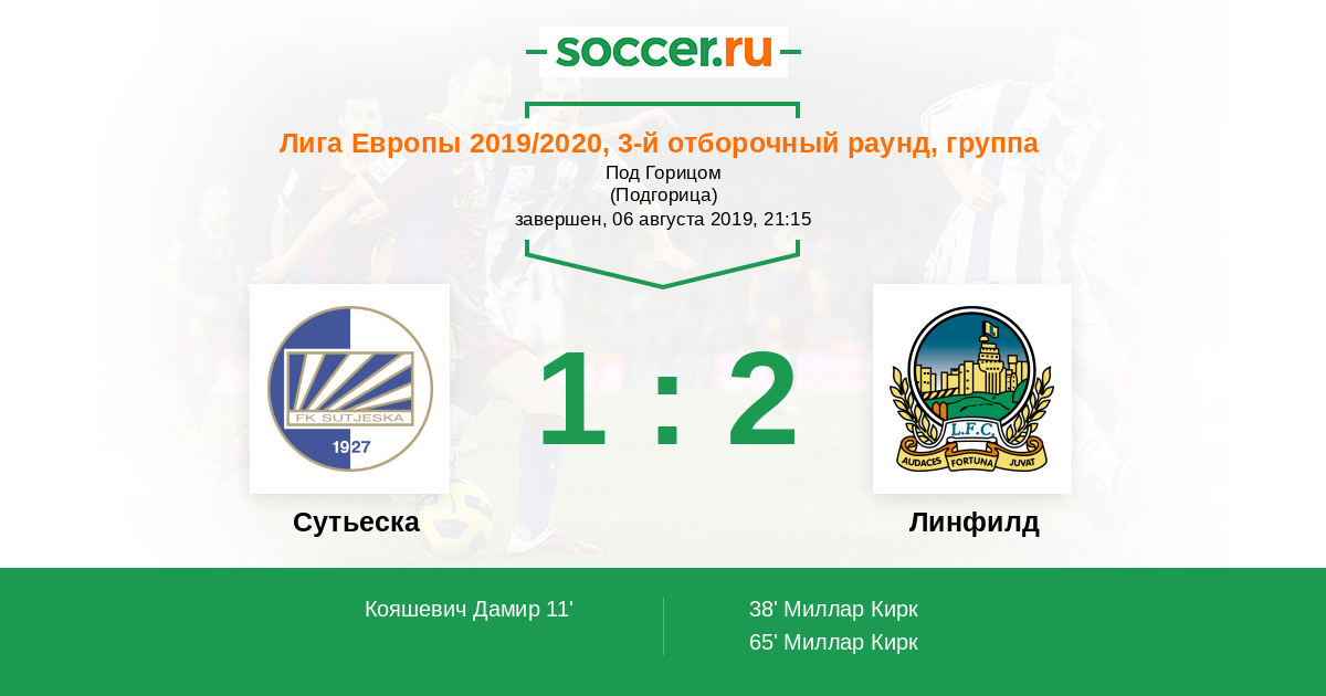 Сутьеска - Линфилд: обзор матча 6 августа 2019