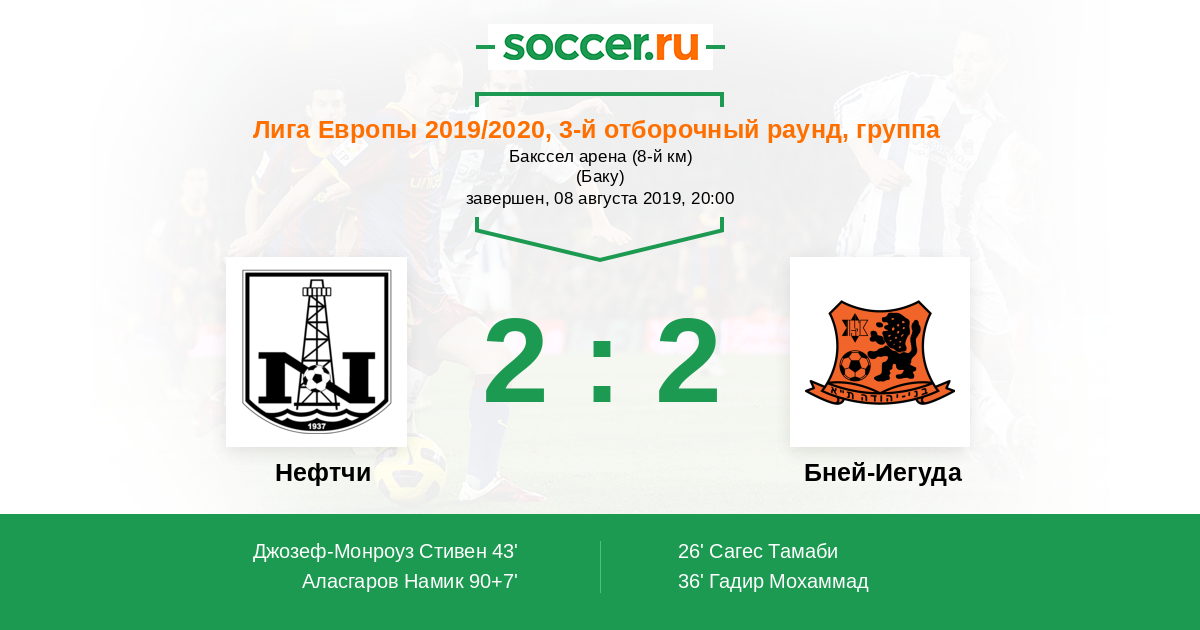 Нефтчи - Бней-Иегуда: обзор матча 8 августа 2019